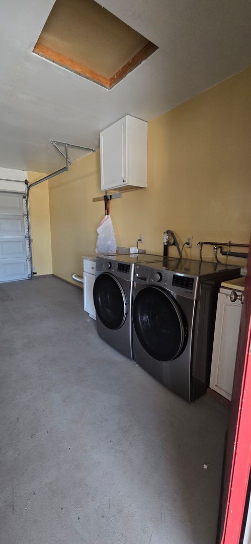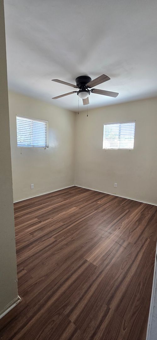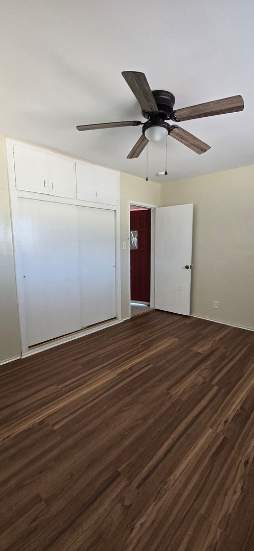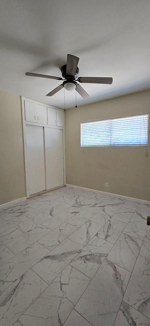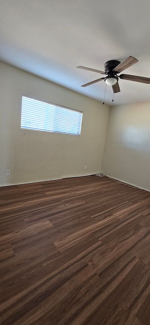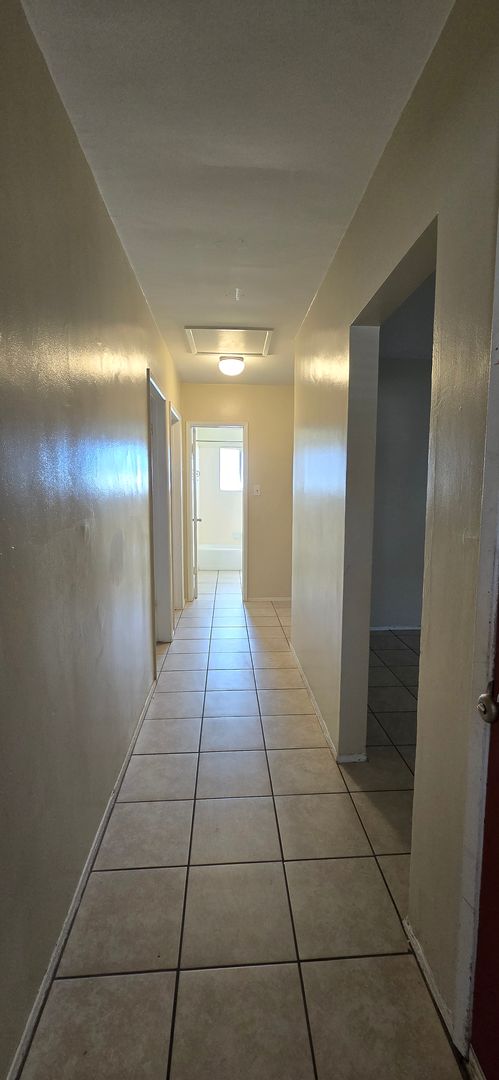 1,121 sq ft 3 bed 1.5 bath single story home with tile flooring throughout common areas, stainless steel range, mini split cooling system in living room, wall heat, LG frontload washer* & dryer*, refrigerator* washer/dryer hookups, covered patio, large fenced backyard & attached 2 car garage, with automatic opener. Trash Included. Pet OK. Items* Not Warrantied. Renters Insurance Required. $40 Application Fee Per Adult. 8 month Lease.