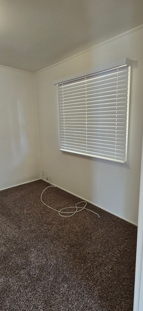 900 sq ft 2 bed, 1 bath single story home located on large fenced lot with NEWER carpet, fireplace, wall heater, swamp cooler, washer/dryer hookups, storage shed, 1 Car garage & 1 Carport. Pets OK. Trash Included. Renter's Insurance Required. $40 Application Fee Per Adult. 6-8 Month Lease.